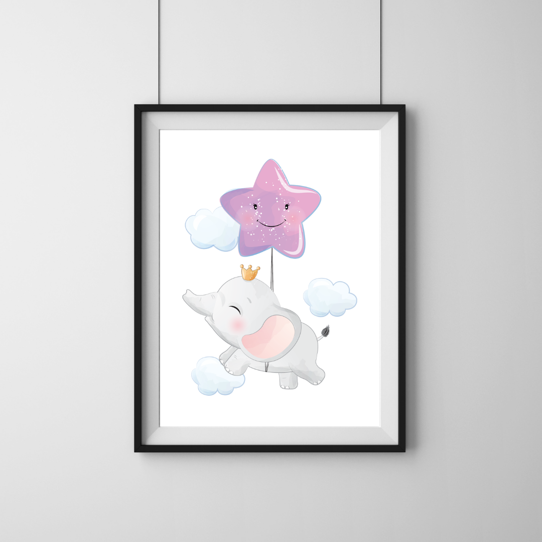 Elefant med Rosa stjerneballon