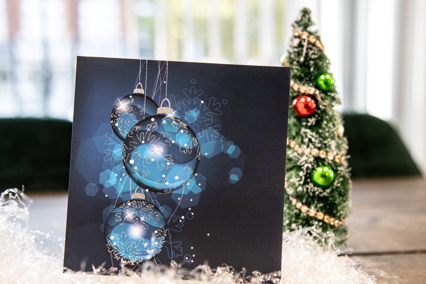 Eksklusivt julekort med mat soft touch overflade og sølvfolie effekter.