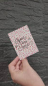 Kortet er printet på 250gr glat ensidet bestrøget karton med mat overflade og sølv folie effekt.